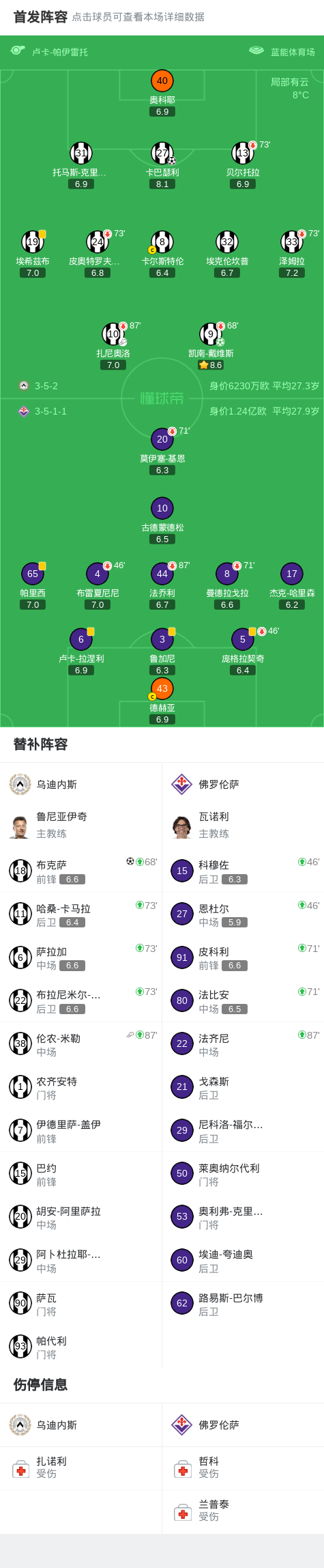 篮球数据-乌迪内斯3-0佛罗伦萨,凯南-戴维斯点射,卡巴瑟利破门